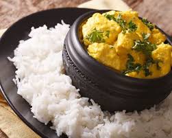 accompagnement: riz – patate douce ou igname, pelés, coupés en dés et sautés