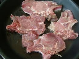 Dans un bol, mélanger gruyère râpé + 3 cuillères à soupe de crème fraîche. Etaler ce mélange sur les côtes de porc.