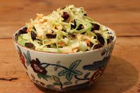 Dans un saladier, mélanger lanières de chou + dés de pommes + raisins égouttés.