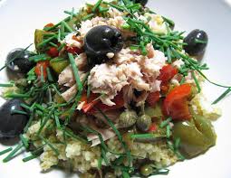 Surmonter chaque tranche de pain trempée de tomate + poivron + citron confit + olive + câpres + 1 dé de gruyère et parsemer le tout d’oeuf dur.