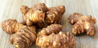 Peler les topinambours. Préparer fèves et artichauts frais. Recouper en 2 ou 4 les fonds d’artichauts.