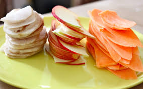 Emincer très finement, comme pour des chips, à la mandoline ou au couteau, les patates douces.