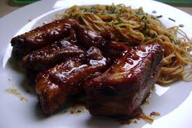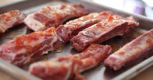 Disposer les côtes de porc sur un plat. Les napper de la préparation précédente. Bien mélanger pour recouvrir tous les morceaux. Laisser mariner au moins 4 heures en remuant le tout au moins 1 fois par heure.