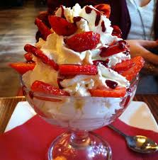 Parsemer d’amandes effilées et d’1 fraise au centre de chaque coupe.