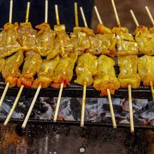 Façonner les brochettes en enfilant les morceaux de poulet.