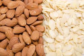 Concasser grossièrement la moitié des amandes ( le reste servira pour la déco).