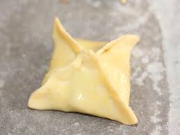 Replier la pâte pour former des chaussons ( en rectangles ou en aumônières) et bien souder les bords en les humidifiant légèrement au préalable.
