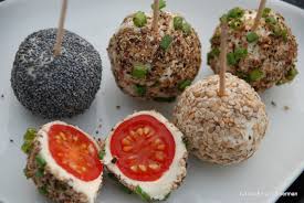 Prendre 1 noisette dans la paume de la main et 1 cuillère à soupe de préparation dans l’autre. Entourer la noisette de pâte au fromage et travailler le tout pour obtenir de petites boulettes que vous déposez au fur et à mesure sur un plat de service garni de feuilles de vigne. ( AUTRE RECETTE: – Vous pouvez prendre de gros grains de raisins ou des petites tomates cerises à la place des noisettes et les entourer de préparation fromagère).