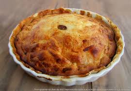 Beurrer et fariner une tourtière ( = moule à tarte à bord plus haut). Y disposer un 1er rouleau de pâte ( = foncer) en la laissant un peu déborder. Entreposer au frigo.