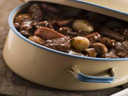 Ajouter carottes + pommes de terre + champignons + bouillon + sel + poivre. Mélanger. Couvrir. Laisser doucement mijoter 1 heure à 1 h 15..
