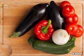 Retirer le trognon de l’aubergine et de la courgette. Les découper en dés.