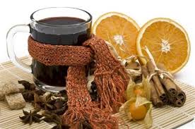 Dans une autre casserole, mettre vin rouge + jus d’orange + reste de sucre + reste de zeste + bâton de cannelle + gingembre + clou de girofle. Porter à petit frémissement pour 7 à 8 mn. Oter du feu. Passer le tout à travers un chinois.