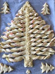 ( Pour un apéritif, le façonnage est le même mais fourrez les torsades avec tapenade, – pesto, – tomates séchées hachées, – saumon fumé, – sardines écrasées, – rillettes ou mousse de thon ou de truite,- gruyère + thym, – Parmesan, – Roquefort + noix pilées,- graines diverses: cumin, sésame noir et blanc, pavot, anis, fenouil …., – et, badigeonnées de beurre fondu + fruits secs grossièrement pilés: noisettes, noix de cajou, cacahuètes ……. et certaines pourront être dégustées chaudes)