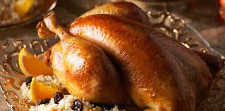 Servir le poulet très chaud, découpé, entouré de la farce.