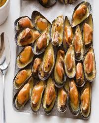 Réduire la chair des avocats en purée en la mixant + jus de citron + 10 cl du jus réduit des moules + ail + crème fraîche + sel + poivre.