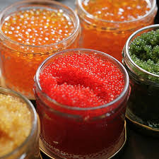 100 g d’oeufs de poisson: oeufs de lump, caviar, oeufs de truite, de saumon, de harengs, de poisson volant ….