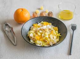 Laver et essorer la salade choisie ( ou préparer les endives en retirant le trognon). Emincer en fines lanières.