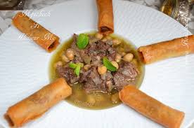 Dans une cocotte, chauffer beurre + la moitié de l’huile. Y mettre à revenir 10 mn morceaux de viande + 2 oignons hachés + ( pois chiches) + cannelle + sel + poivre.
