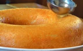 Sortir le gâteau du four. Le démouler 5 mn après sa sortie. Le mettre sur un plat un peu creux. L’arroser de sirop chaud régulièrement jusqu’à complet refroidissement du gâteau et du sirop.