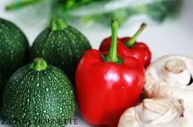 Découper champignons + courgette + poivron en morceaux à peu près de la même taille.