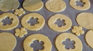 Découper des galettes dans un des rouleaux et des couronnes à 1 ou 2 trous de la même taille dans le second rouleau ( les formes désirées pour le trou central: étoiles, fleurs …).