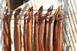 Dans une cocotte, chauffer l’huile sur feu moyen. Mettre les 3/4 des oignons + tomates + piment + moutarde + poisson fumé + sel. Mélanger 3 mn. Couvrir. Laisser mijoter doucement 15 mn.
