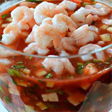 Répartir les crevettes dans des verrines, des bols ou des coupes. Les arroser avec la marinade.
