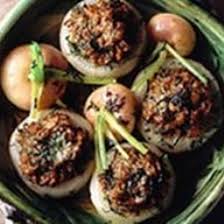 Egoutter les navets. Leur couper un chapeau. Creuser l’intérieur sans entamer le pourtour avec une cuillère à melon ou à pamplemousse ( cuillère dentelée).