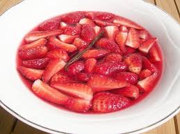 Répartir les fraises dans des assiettes à soupe ou des coupes.