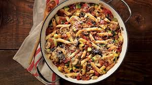 Le poulet étant cuit, sortir le plat du four. Retirer les 2 gousses d’ail. Les ouvrir et les presser pour faire sortir la purée d’ail. La mélanger dans le plat + pâtes + sauce pistou +, délicatement, les 1/2 tomates cerises.