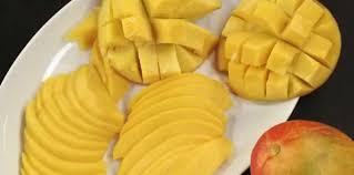 Peler et dénoyauter la mangue pour la déco. Emincer la chair.