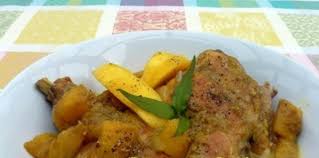 Servir le lapin chaud ou froid, entouré de lamelles de mangue fraîche.