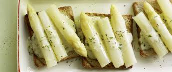 Peler les asperges blanches ( pas les vertes). Les couper à la taille des tranches de pain de mie ( vous ferez une soupe avec le reste des queues). Plonger les asperges dans l’eau bouillante pour 15 mn. Les égoutter.