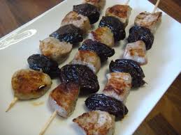 Façonner les brochettes en alternant filet + pruneau + foie …… .