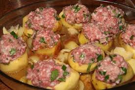 Peler ou pas les pommes de terre. Les creuser sans les percer. Beurrer largement l’intérieur de chaque pomme de terre. Saler, poivrer. Remplir la cavité de la farce viande/fenouil en tassant bien.