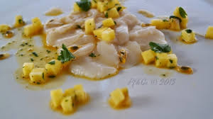 Laver et sécher les noix de st Jacques. Les émincer dans l’épaisseur en 2 ou 3 tranches. Disposer les st Jacques dans un plat ou une assiette creuse. Verser dessus la moitié de la purée de mangue. Laisser mariner au frigo 15 mn.