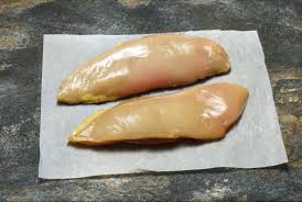 Disposer les blancs de poulet côte à côte dans un plat creux. Saler, poivrer.