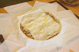 Badigeonner le dessus de la pastilla avec le dernier oeuf battu.