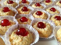 En les enfonçant un peu, poser 1/2 cerise au centre de chaque petit gâteau.