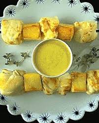 Servir les brochettes accompagnées de sauce curry et de riz.