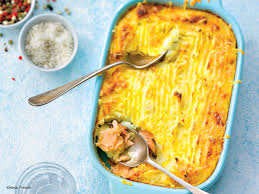 Dans le fond du moule beurré, étaler 1/3 de purée de pommes de terre.