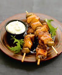 Façonner 6 ou 12 brochettes en alternant olive + oignon + viande + citron confit + viande …etc … jusqu’à épuisement des ingrédients.