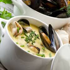 Mettre les moules dans un faitout couvert + oignon + vin blanc, sur feu vif pour 4 à 5 mn, que les moules s’ouvrent. Renverser les moules dans un égouttoir placé au-dessus d’un plat creux pour recueillir le jus de cuisson. Filtrer le jus de cuisson des moules à travers un chinois.