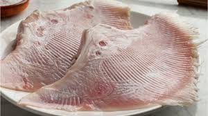 Découper les ailes de raie en 3 ou 4 morceaux. Les plonger dans l’eau bouillante et baisser pour un petit frémissement pendant 10 mn. Oter le récipient du feu et laisser la raie encore 10 mn dans l’eau qui refroidit.