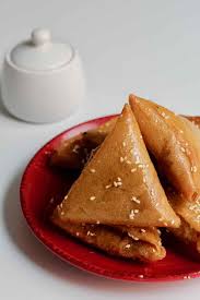 Pendant ce temps, plonger les triangles dans la friture pour 3 à 4 mn ( ou bien les enfourner pour 4 à 5 mn).