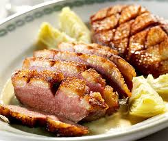 Cuisson: – Dans une poêle à sec, à feu vif, égouttés de leur marinade et côté peau, faire griller les magrets 10 mn.
