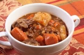Dans une cocotte sur feu assez vif, chauffer le beurre. Y faire dorer cubes de viande + lardons ( ou bacon) + oignons en quartiers.