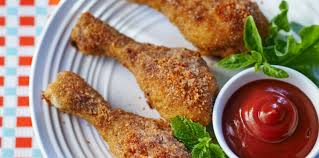 Rouler chaque morceaux de poulet 1) dans la farine, 2) dans les oeufs battus et 3) dans la chapelure.