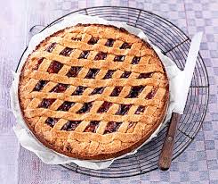– Pour les croisillons, étaler le reste de pâte. Y couper des bandelettes. Les disposer sur le dessus de la tarte en les croisant –