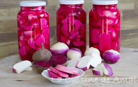 Dans un grand bocal ( ou 2) fermant hermétiquement, mettre carottes + navets + betterave + fenouil + citron en 4 + les 3/4 des olives + sel + 5 cl de vinaigre ( 3 à 4 cuillères à soupe). Fermer le bocal hermétiquement.